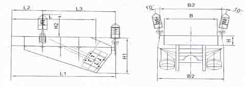 GZG電機振動給料機(電機側(cè)置式)電機轉(zhuǎn)動給料機設計時未考慮倉壓倒影響,為保證給料機的正常運行,必須盡量減少倉壓對給料機的影響。因此在設計溜嘴時,應用溜嘴的后側(cè)板承擔料柱的垂直壓力。溜嘴形式及配置尺寸可參考圖及表中數(shù)值。