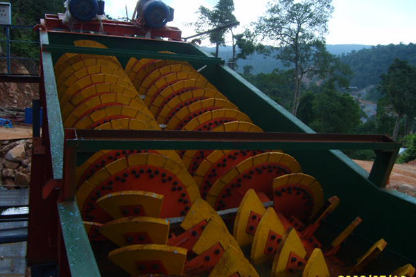 - 清洗:砂石從給料箱進(jìn)入沉淀池,在轉(zhuǎn)動著的螺旋葉片作用下,使砂石翻滾并相互研磨,除去覆蓋砂石表面上的雜質(zhì),同時(shí)破壞包復(fù)砂粒的水汽層,以利于脫水。由多孔板進(jìn)行的清洗水形成上升水流,將比重小的異物帶到水面溢出堰外,完成清洗作用。